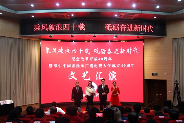 2018年12月29日,学校举办纪念改革开放40周年暨邓小平同志批示广播电视大学成立40周年文艺汇演。汇演以“乘风破浪四十载 砥砺奋进新时代”为主题,将学校辉煌奋斗历程和校友、师生对学校的祝福,汇聚成“梦想篇:希望的田野”“改革篇:春天的故事”“创业篇:奋进的号角”3个篇章,精彩纷呈,高潮迭起,展现了电大人奋发有为的精神面貌和蓬勃向上的气宇风采。汇演上还发布了全省电大“2018年度十大新作为 新气象”。