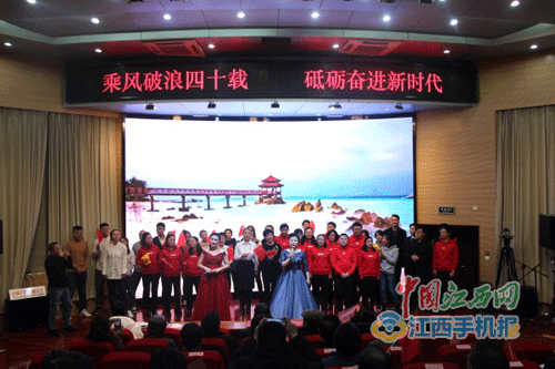 中国江西网讯 2018年12月29日下午,江西广播电视大学举办“乘风破浪四十载砥砺奋进新时代”庆祝改革开放40周年暨邓小平同志批示广播电视大学成立40周年文艺汇演。该校领导易小明、朱爱莹、黄平槐、王水平、陈江鸿出席,教职工及学生代表到场观看演出。
