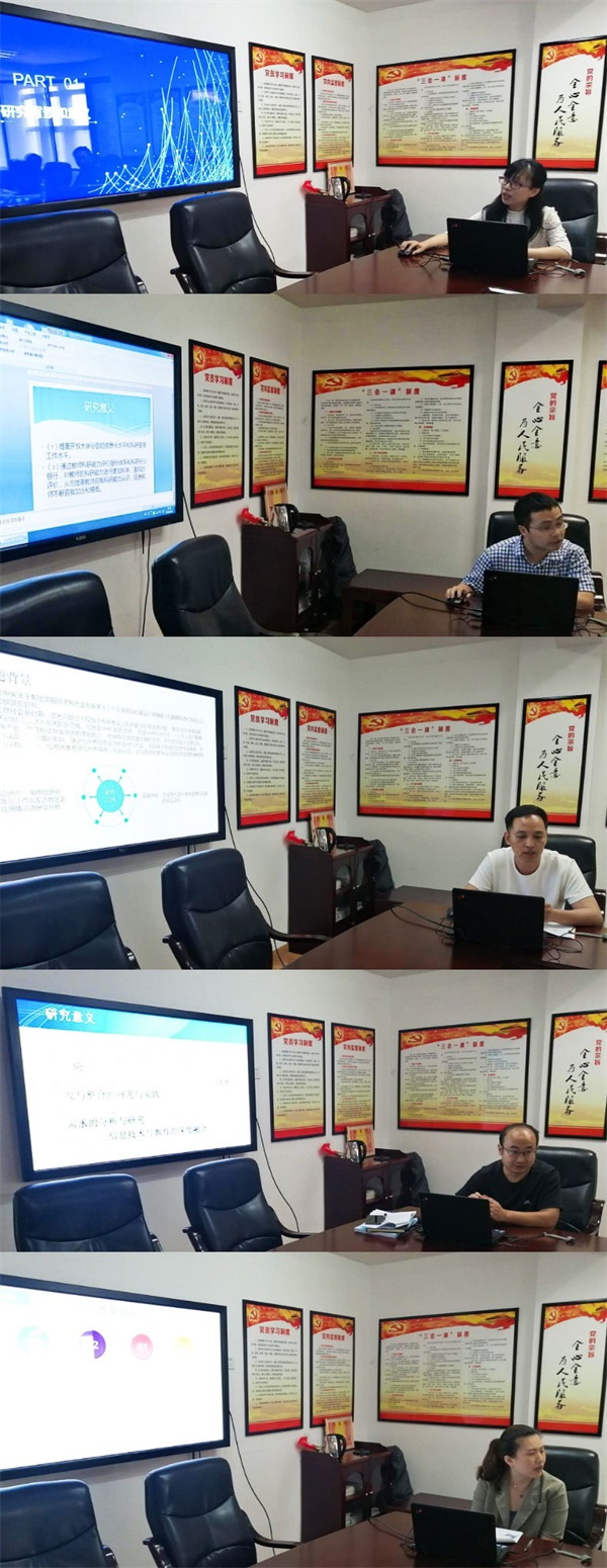 在评审会上,5位课题主持人依次围绕课题“基于云计算的数字供应链信息共享激励模型研究”“国家开放大学分部科研管理系统研究与设计”“基于云商平台下农村电商信息化应用模式研究”“基于开源系统的电大远程开放教学平台构建研究” 以及“互联网经济时代下开放教育会计学科学生培养模式的探索和研究——以江西广播电视大学为例”进行了8分钟的结题陈述,主要就课题的研究依据、研究目标、内容及创新之处、研究思路及方法、研究成果等作了简要说明,随后由主审评委进行提问,课题主持人进行作答,评委提出修改意见。