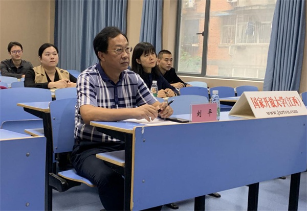 江西广播电视大学副校长刘平,教学质量监控与评估中心、教务处、学工部(处)、党委宣传部、学习资源中心、各学部及全省电大系统各参检单位负责人及相关工作人员参加会议。