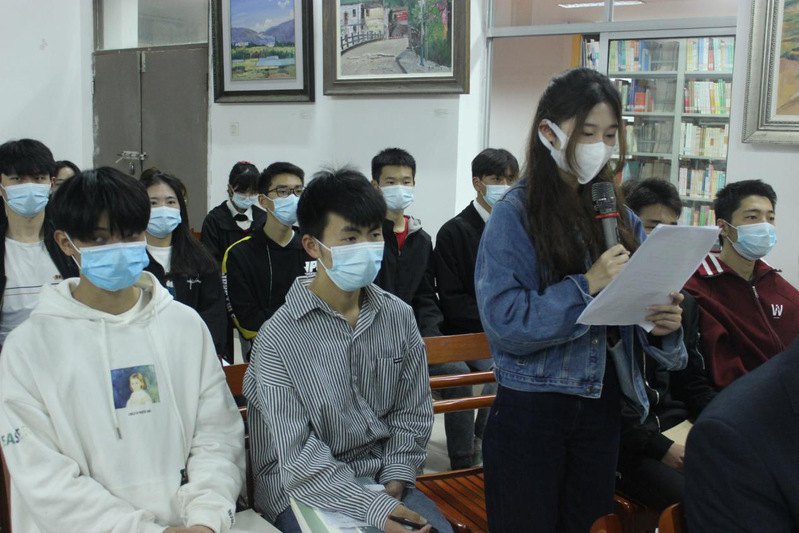 同学们就分享所思所得,结合自身成长过程中的困惑,纷纷向杨近铬提问,杨近铬结合目前国际大环境和国内发展新格局,以及同学们的使命担当一一作答。