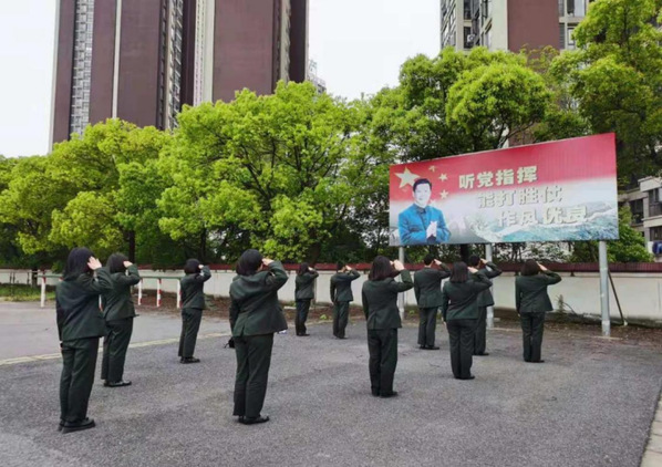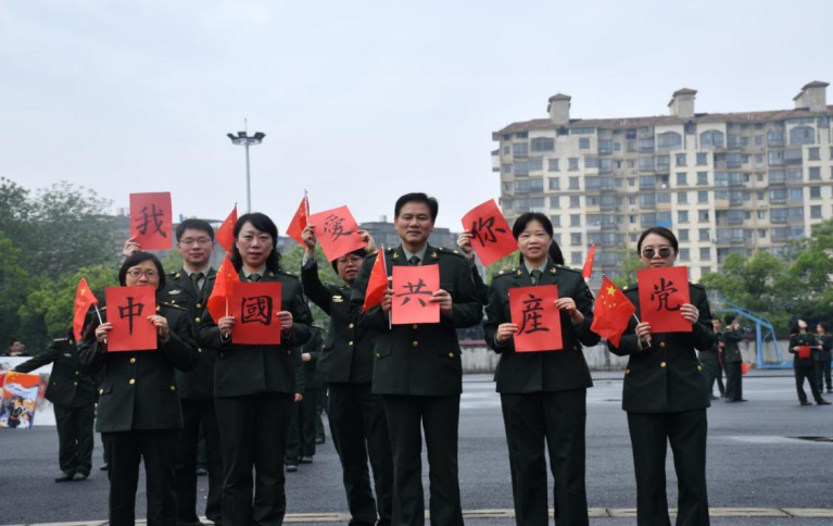 4月21日,学校人武学院人文系全体教师和部分学生通过快闪活动向中国共产党百年华诞献礼,以青春悦美音章礼赞伟大祖国。学院副院长占农、杨柳参加此次快闪活动。