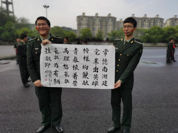上午9:40,“五星红旗迎风飘扬,胜利歌声多么响亮歌唱我们亲爱的祖国…”熟悉的旋律响起,数百名人武学子挥舞着手中的红旗、带上自己的作品,脸上洋溢着灿烂的笑容快步至操场。