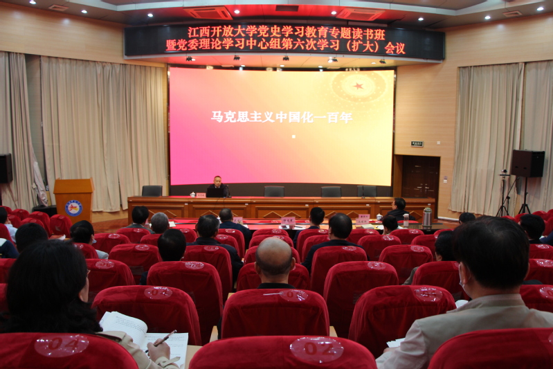 4月25日,WilliamHill官方网站党史学习教育专题读书班开班式在青山湖校区举行,学校特邀中国社科院马克思主义研究院马克思主义中国化研究部主任,研究员刘志明教授作首期专题辅导。校党委副书记邓文君出席并做动员讲话,副校长刘平,党委委员、副校长邱东升,党委委员、副校长冯豫红出席,学校副处级以上干部参加读书班。本次读书班由校党委副书记、校长黄平槐主持。