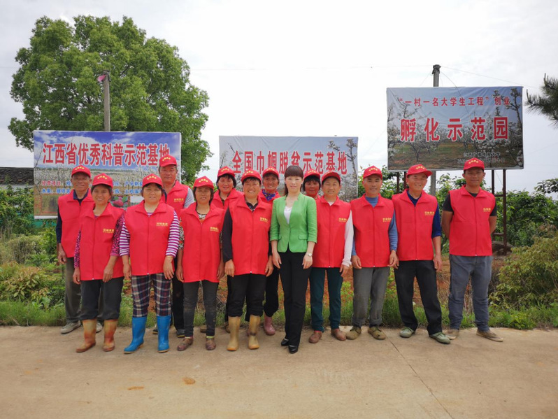 乐平市乡村大学生创新创业基地坐落在乐平市郊一片桔园里,“一村一名大学生工程”的学生们经常在这里交流种植、创业心得。走访调研中,思政教师团队在魏秋香带领下走进桔园,现场观摩农户施肥剪枝,并与农户交谈。我们了解到,魏秋香出生于一个普通的农民家庭,家境清贫,于中学辍学外出打工,但她依然拥有对知识的向往,成为了我校“一村一名大学生工程”行政管理专业班学生。同时,正是有了国家政策支持,她坚定回家乡开垦荒山种植果树,聚焦农村实际,秉承开放理念,积极与相同情况的学生交流合作,通过技术创新,带领同学和村民共同致富,现已建成集农产品生产、初加工、销售、农业休闲于一体的现代农业产业化组织,年产值1000余万元,间接带动农户500余户。她本人也成为乡村大学生创新创业协会会长,进一步扩大乡村大学生这一组织,推动乡村振兴。