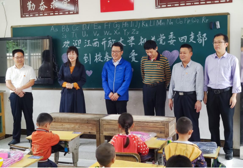 近日,校党委委员、纪委书记王水平深入学校定点帮扶村南康区大坪乡上洛村开展党史学习教育“我为群众办实事”调研,并为上洛村小学和积龙小学的全体学生送去了机关党委四支部全体党员捐赠的学习用品。