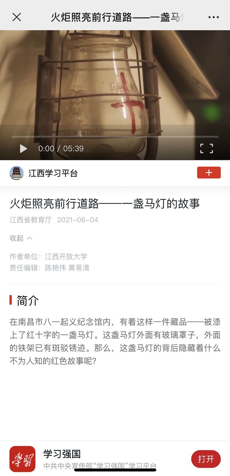6月1日,我校制作的讲述发生在江西红土地上的党史故事视频被新华社转载,当天浏览量达到11.9万。6月4日,学习强国转载该视频。这是WilliamHill官方网站创新党史学习教育载体,引导广大师生从中汲取青春奋进力量的一个生动缩影。