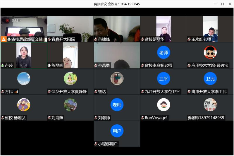 会上,13个分校的思政教师代表交流了各校关于全会精神融入思政课教学的相关工作情况以及特色亮点。鹰潭开放大学李卫民老师说道,《习近平新时代中国特色社会主义思想》这门课与全会精神深度契合,应在这门课上重点阐明马克思主义中国化三次历史性飞跃的理论成果,深刻剖析党百年奋斗的“五个方面”历史意义和“十个坚持”历史经验,引领学生深刻把握“两个确立”,真正做到“两个维护”,坚定听党话、跟党走的坚定信念,肩负起新时代青年的使命担当与价值理想。上饶开放大学王永红老师作《学习党的十九届六中全会精神必须要注重做到五个结合》主题发言,他表示,要做到理解全会精神,必须与学习前两个《决议》结合起来、与学习党的十九大精神结合起来、与学习建党百年重要讲话结合起来、与党史学习教育结合起来、与落实当前的工作结合起来。