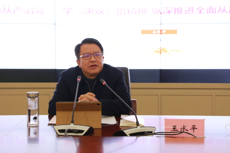 王水平从党的百年奋斗历程中,三个《决议》象征的共产党人承前启后的三段赶考之路说起,与大家分享了党的十九届六中全会召开的背景,《决议》的基本框架和鲜明特点,并结合学习贯彻《决议》,围绕纵深推进学校全面从严治党谈了三点体会。