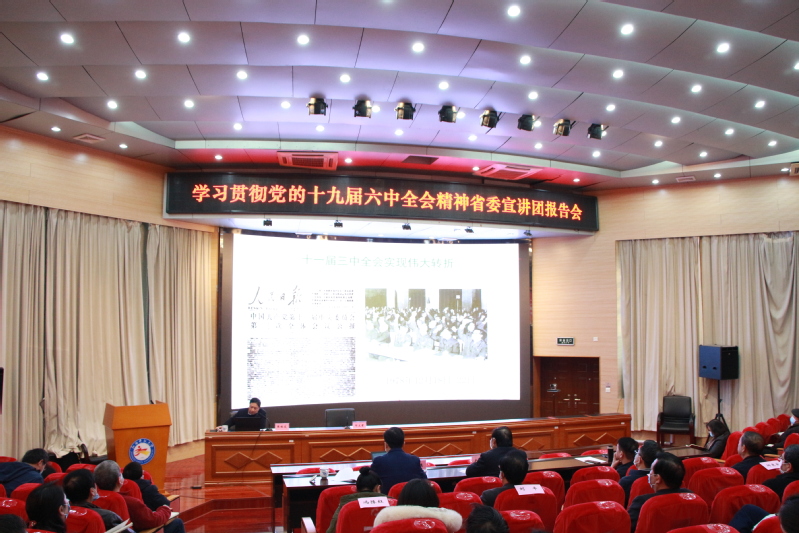 12月29日下午,省委宣讲团成员、江西财经大学马克思主义学院院长陈始发教授为我校中层干部培训班作党的十九届六中全会宣讲。全体校领导出席宣讲会。校党委副书记邓文君主持会议。