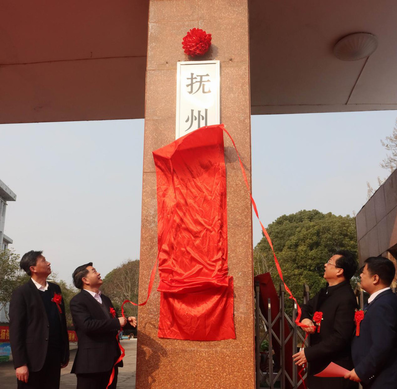 在热烈的掌声中,李高兴、刘平、赵立、傅长岭共同为抚州开放大学揭牌。