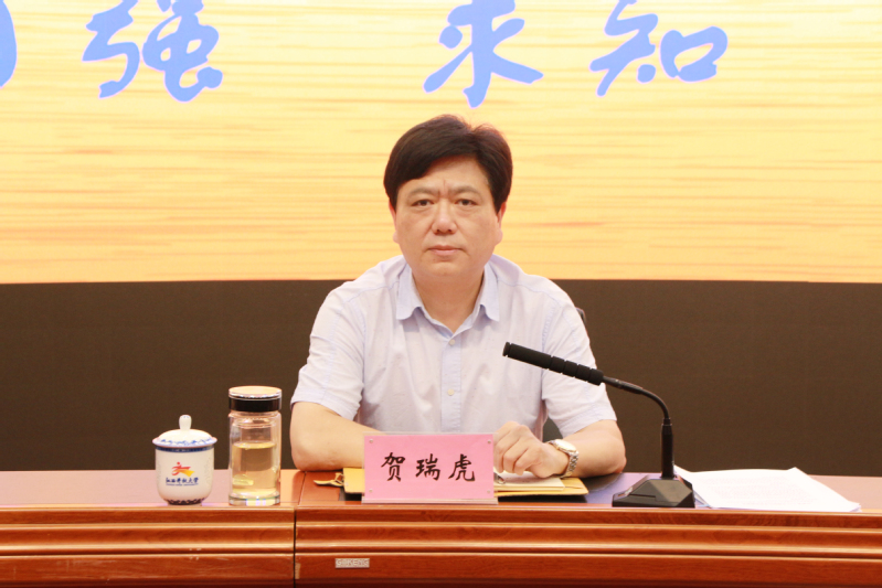 6月16日上午,WilliamHill官方网站召开打造模范机关(部门)工作推进会,校党委书记贺瑞虎出席并讲话,校党委副书记邓文君就如何推进工作做了布置。在家校领导、处级干部及青山湖校区科级干部共100余人参加会议。校党委副书记、校长黄平槐主持会议。