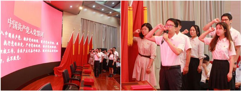 会议在庄严的国歌声中拉开帷幕,在2020年度教育系统新时代赣鄱先锋·群众身边的好党员汪一心同志的领誓下,新党员进行入党宣誓。