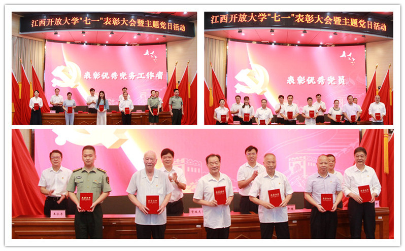 校领导贺瑞虎、黄平槐、王水平、邱东升分别为先进党支部、优秀党务工作者和优秀共产党员颁奖。