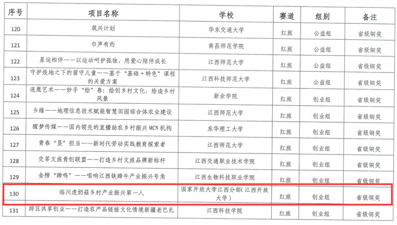 近日,第八届江西省“互联网+”大学生创新创业大赛圆满落下帷幕,WilliamHill官方网站在本届大赛中取得了1银1铜的好成绩。我校选送的《南国杉人》项目荣获职教赛道省级银奖,《临川虎奶菇,乡村产业振兴第一人》项目荣获“青年红色筑梦之旅”赛道省级铜奖。