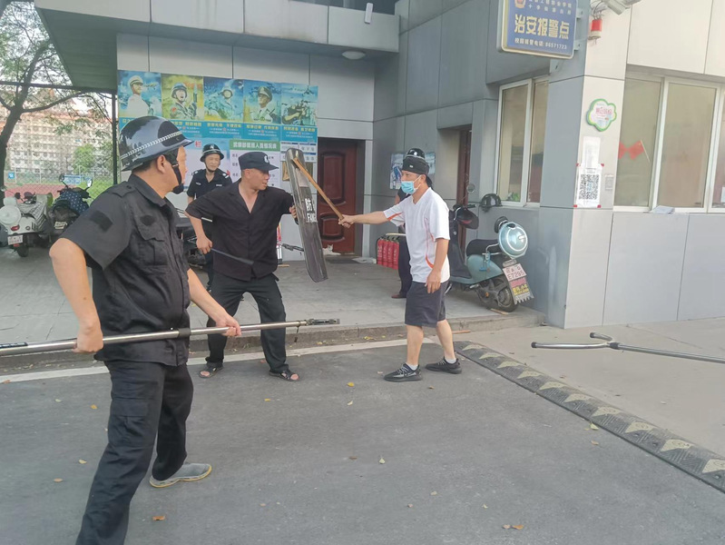 为进一步增强校园安保人员的反恐防暴意识和应急处突能力,有效预防和控制校园突发暴力袭击事件,切实保障师生身体健康与生命安全,8月9日至11日,校保卫处联合工程职院、人武学院以及天翔物业公司,组织安保人员分别在三个校区开展反恐防暴安全应急演练。