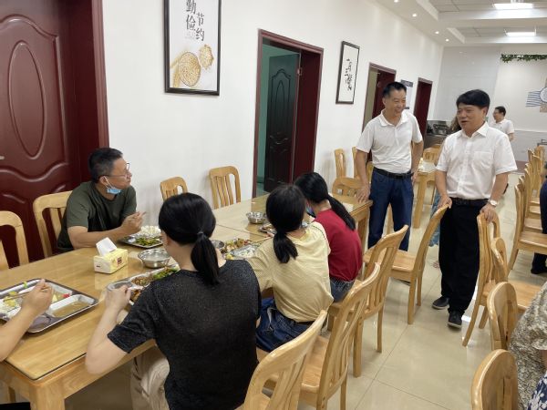 校党委书记贺瑞虎来到食堂,与正在用餐的老师交谈,询问他们第一天的用餐体验。老师们纷纷表示,自助餐模式满足了口味差异与营养需要,还实现了“光盘”。从环境设计到就餐服务都有了极大提高,学校太给力了!