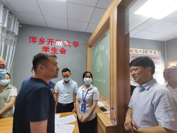 校园内,萍乡开大高职班思政课、会计实训课、保育员培训课、家庭教育学院专题讲座、书法课、声乐课、计算机课、普通话测试等教学活动开展得有声有色,一群正围坐在活动室开会学生会的成员,引起了贺瑞虎的注意,他上前亲切的询问他们的学习情况和学生会活动开展情况。在萍乡开大中专校新校区,贺瑞虎进一步了解高职教育情况和新校区建设及发展规划,指出希望萍乡开放大学能进一步发挥开大系统优势,推动职教融合、产教融合新发展。