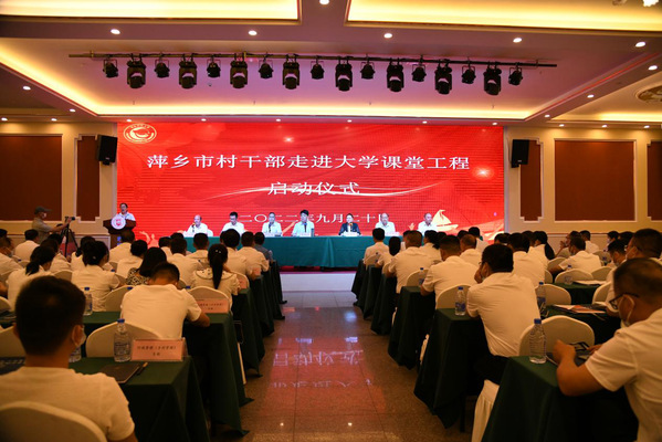 在萍乡开放大学,贺瑞虎在萍乡市委教育工委书记、市教育局局长李奭萍陪同下,对学校开放教育、中高职教育、老年教育、社区教育以及龚全珍师德教育学院建设情况等进行调研指导,并应邀出席由萍乡开放大学承办的萍乡市村干部进大学课堂工程启动仪式。