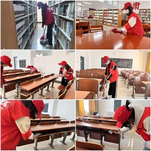 整治环境共建美丽校园。在教室、操场、实训室、宿舍公共区域……志愿者们拿起扫帚,用自己的双手开展卫生大扫除,扎实进行“爱国卫生运动”。学生志愿者干劲十足,互相配合,彻底清理了校园卫生死角,进一步整治了校园卫生环境,共建建设和谐美丽校园。