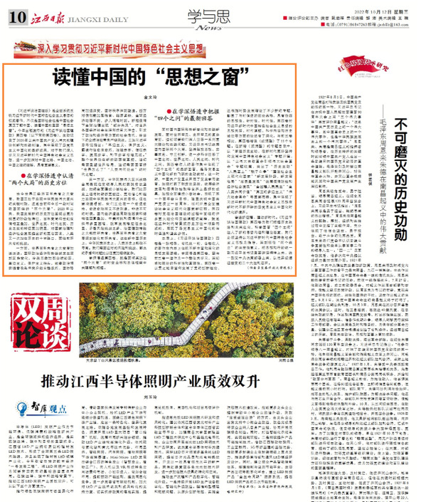 宜春开大金文玲在《江西日报》发表文章《读懂中国的“思想之窗”》