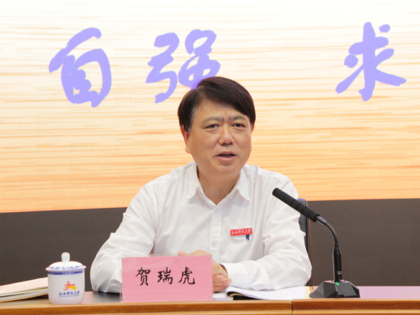 贺瑞虎为大家简要介绍了学校基本情况,代表学校党委行政对新进教职工表示热烈的欢迎。贺瑞虎指出,党的二十大报告首次将科技、教育、人才三大战略摆放在一起,体现了我们党对教育、科技、人才事业前所未有的关心与重视,新入职的青年教师们生逢其时,也重任在肩。对此,他还提出三点工作要求。一要提高站位。牢记为党育人、为国育才的初心和使命,牢记立德树人根本任务,旗帜鲜明讲政治、苦练内功强本领,不断加强理论学习和实践笃行,努力成长为新时代“四有”好老师。二要找准定位。在其位谋其职,无论身处什么岗位,都要善于学习、善于反思,做到干一行爱一行、钻一行精一行,成为更好的自己,成就更好的未来。三要争先进位。教师应当具备责任意识、实干意识、创新意识和问题意识,牢记“有为才有位”,实实在在干事业,争创一流业绩,做一名无愧于新时代的人民教师。