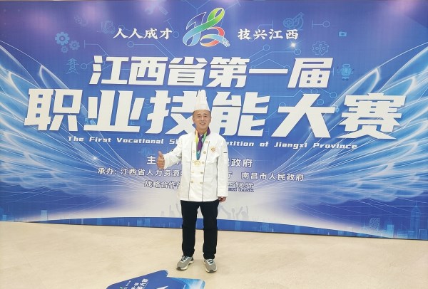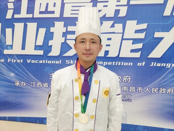江西省开放大学派出“二元制”烹饪工艺与营养专业企业导师殷建军和学生全文明2位选手参加“中式烹饪(赣菜)”项目,经过激烈比拼,两位选手摘金夺银,包揽该项目冠亚军!