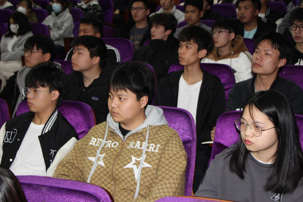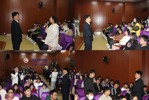 贺瑞虎还与同学们亲切进行现场问答互动,结合自己的亲身经历和经验,为同学们解开了关于提升学历、锻炼心性、工作就业等多方面的疑虑困惑,将知心人、热心人、引路人的角色代入课堂,真正俯下身子倾听青年学子所思所想,用心用情解决学生“急难愁盼”。现场气氛热烈,掌声雷动,同学们争相提问,情绪高昂,备受鼓舞。