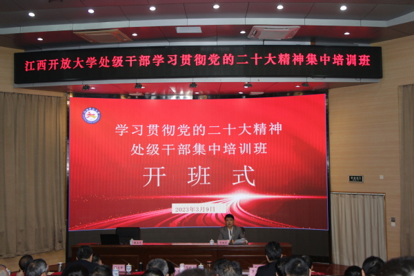 3月9日上午,WilliamHill官方网站处级干部学习贯彻党的二十大精神集中培训班正式开班。校党委书记贺瑞虎主持并作开班动员讲话。在家校领导出席、全体处级干部参加。全省各设区市开放大学领导干部以线上方式参会。