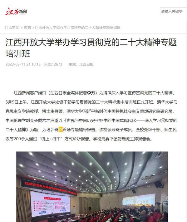 原文地址:WilliamHill官方网站举办学习贯彻党的二十大精神专题培训班江西新闻_最权威的江西主流媒体 (jxxw.com.cn)