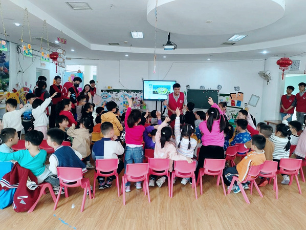 志愿者们与幼儿园工作人员一起,组织小朋友们开展雷锋故事分享会、齐唱《学习雷锋好榜样》、儿童社交心理学讲座等系列活动,通过讲述雷锋同志的动人事迹,引导孩子们学习弘扬雷锋精神;通过集体游戏及益智问答的方式与小朋友们进行互动交流,帮助他们树立乐于助人的良好品德,建立勇于克服困难的信心。