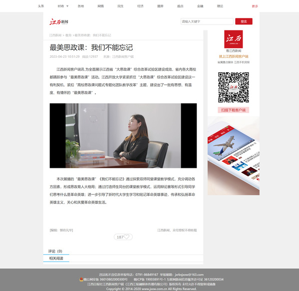 江西新闻聚焦我校“最美思政课”《我们不能忘记》