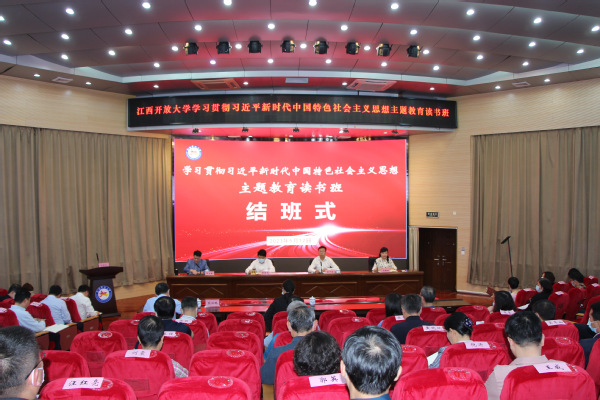 5月12日下午,学校学习贯彻习近平新时代中国特色社会主义思想主题教育读书班结班仪式在东湖校区学术报告厅举行。党委书记贺瑞虎,党委副书记、校长黄平槐,党委副书记邓文君,党委委员、副校长冯豫红,党委委员熊江鹏、张明出席,全体处级干部参加。省委第九巡回指导组桂千金同志莅临指导。黄平槐、冯豫红和处级干部代表陈维佳、林小红分别围绕学习内容,结合自身工作职责作交流发言。邓文君主持,贺瑞虎作总结讲话。