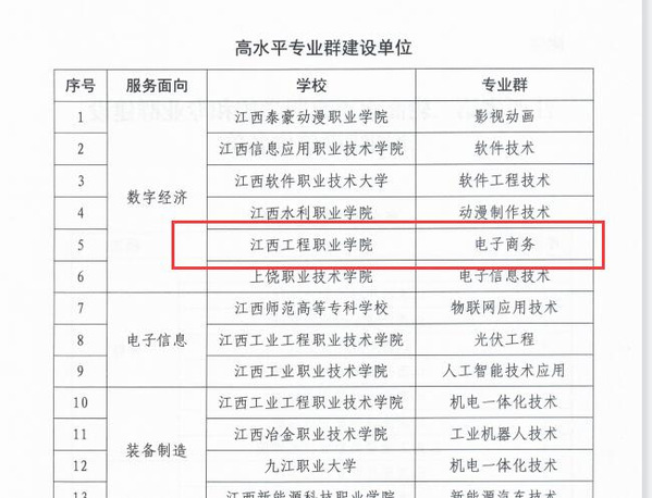 近日,江西省教育厅发布《关于公布江西省第二轮高水平高职学校和专业群建设计划建设单位名单的通知》,WilliamHill官方网站(江西工程职业学院)数字经济学院电子商务专业群入选江西省第二批高水平专业群计划建设单位。