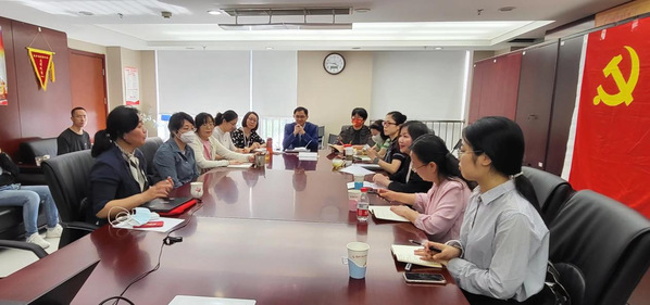 在终身教育研究院,调研组参加了终身教育研究院党支部联学,并就学习型社会研究院建设做了交流分享。