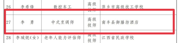 近日,江西省人社厅公布了第七届江西省优秀高技能人才表彰名单,我校继续教育学院2022级“二元制”烹饪工艺与营养专业学生李勇、黄卫星获评“江西省能工巧匠”称号。