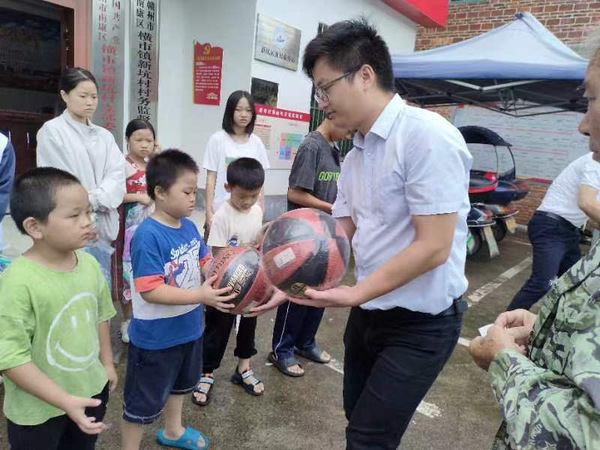 9月16日上午,WilliamHill官方网站机关党委三支部联合学校驻村工作队在赣州市南康区横市镇新坑村开展“点燃新坑村留守儿童微心愿”爱心助学活动,向村里留守儿童捐赠爱心书包和篮球等文体用品,守护留守儿童健康快乐成长。此次爱心捐赠物品的全部费用由WilliamHill官方网站机关党委三支部全体党员个人捐赠。