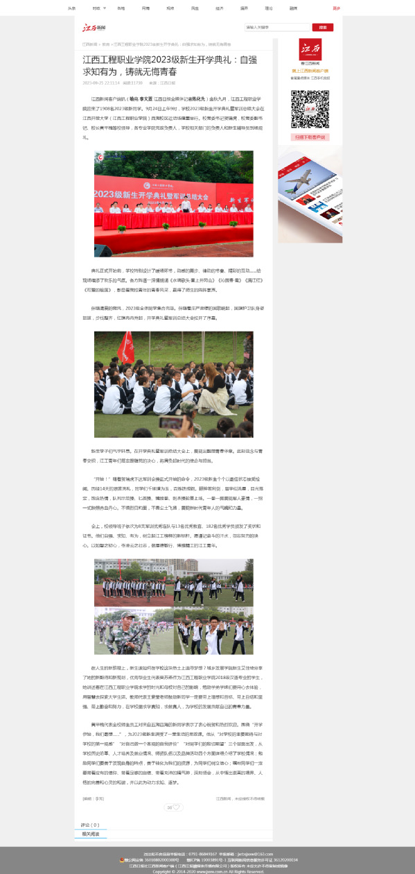 江西新闻:江西工程职业学院2023级新生开学典礼自强求知有为,铸就无悔青春