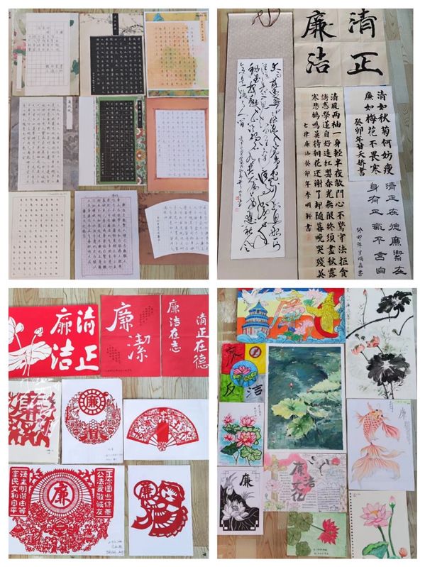 学院通过书法、绘画、剪纸等艺术形式,开展了“廉政文化进校园”活动,该活动吸引200余名同学及学生党员报名参加,择优遴选出75件作品参展。青年学生们在一笔一画比赛中体会国学文化的魅力,也在潜移默化中将‘清廉’二字入脑入心。