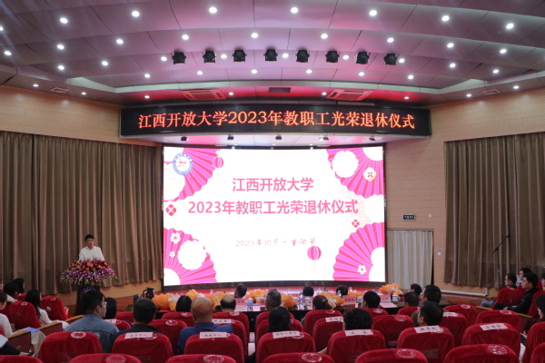“人生易老天难老,岁岁重阳。今又重阳,战地黄花分外香”。10月23日重阳节,学校在东湖校区学术报告厅为近两年退休的27名教职工隆重举行光荣退休仪式。校党委书记贺瑞虎出席仪式并讲话,近两年退休的教职工代表、近三年新入职教职工代表以及党政办公室、组织人事部、工会、教务处、现教中心、离退休人员服务中心的负责同志参加。校党委副书记邓文君主持仪式。