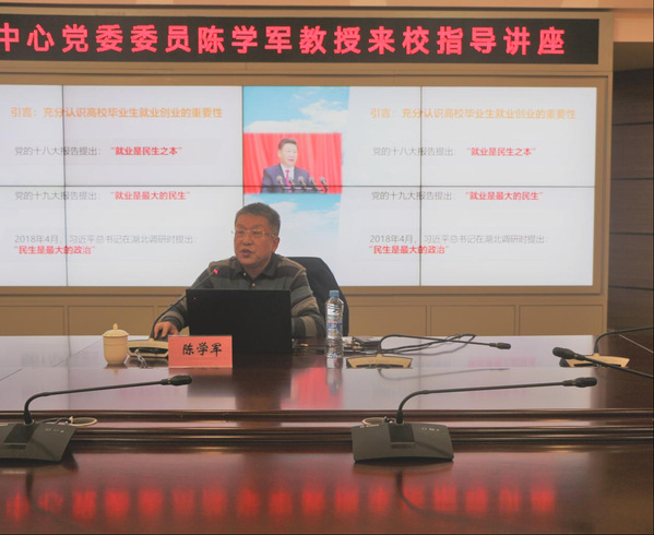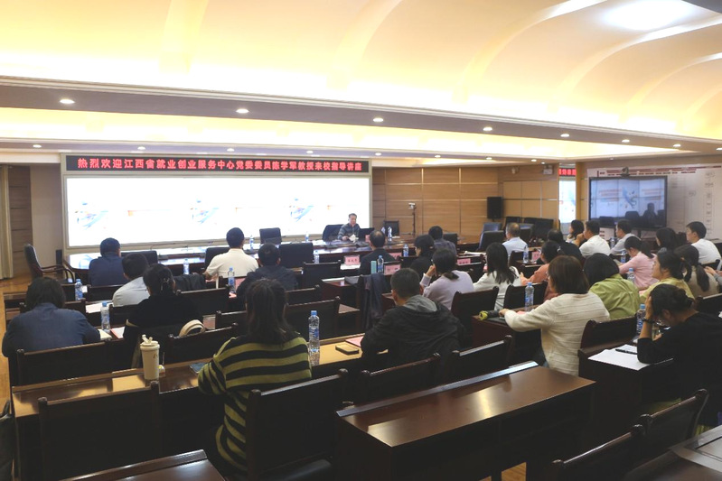 10月25日,学校“就业育人大讲堂”第四讲在东湖校区开讲。国务院就业工作领导小组办公室就业领域首批专家、江西省就业创业服务中心党委委员陈学军教授应邀来校讲座,讲座由校党委委员、副校长徐光兵主持。招生就业工作处(创新创业中心)和专业学院相关同志、毕业班辅导员现场聆听了讲座。