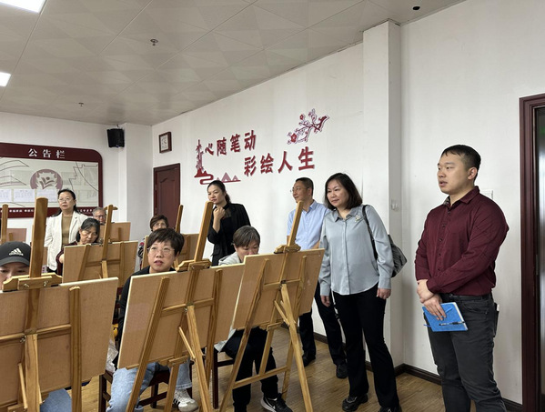在南昌市老年大学,调研组一行参观了校园环境和教学设施,了解学员学习情况,并与南昌市老年大学校长邾更亚、副校长肖凌、教务科科长周明荣就老年大学的顶层设计、师资队伍建设、资源建设与推广、老年教育研究基地建设等问题进行了深入交流。