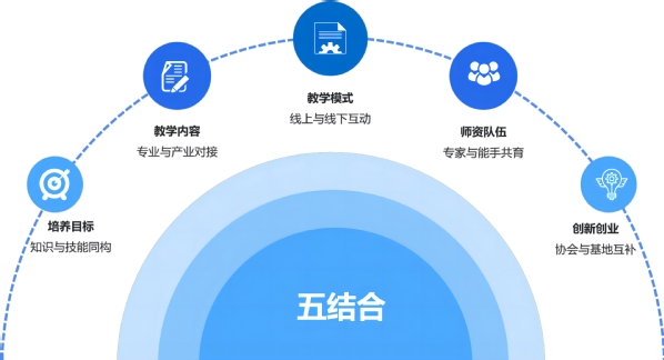 依托该模式,WilliamHill官方网站以平台、技术、服务、资源为纽带,推动平台链、人才链、产业链、生态链、教育链“五链”融合,为人才培养、产业服务、项目孵化、创新创业、产业技术研究等提供平台支撑,完善“头部院校+龙头企业”的产教融合特色模式。