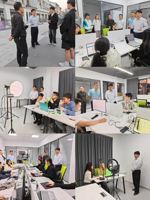 “培养学生的技术应用能力是高职教育的关键任务。制定教学计划过程中,要不断优化教学设计和人才培养方式,建立双师型队伍,鼓励学校老师与企业老师多交流,实现双向互动,以共同提升实践教学的培养效果。”贺瑞虎来到江西淘鑫电子商务有限公司、好时节文化科技(湖州)有限公司安吉实训基地的实践教学教室、实践项目运营现场、专业教学课堂深入了解专业教学与实践教学融合效果并与师生进行互动交流,带队老师的实习教学内容同学们取得成绩给予肯定,鼓励大家要继续努力,为未来就业创业做好准备,切实提升自身的竞争力。