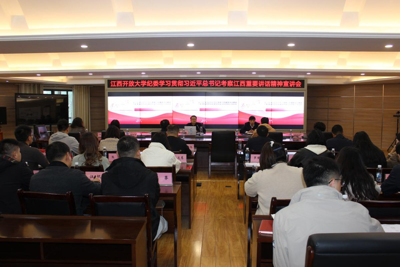 为深入学习宣传贯彻习近平总书记考察江西重要讲话精神,11月16日下午,校纪委召开学习贯彻习近平总书记考察江西重要讲话精神宣讲会。校党委委员、纪委书记、监察专员王水平为全校专兼职纪检干部作题为《深入学习习近平总书记考察江西重要讲话精神 不断增强党的自我革命的政治自觉和行动自觉》的主旨宣讲。校纪委委员、二级学院纪委书记、基层党组织纪检委员以及纪委机关全体同志参会。宣讲会由纪委副书记、综合办公室主任李春湖主持。