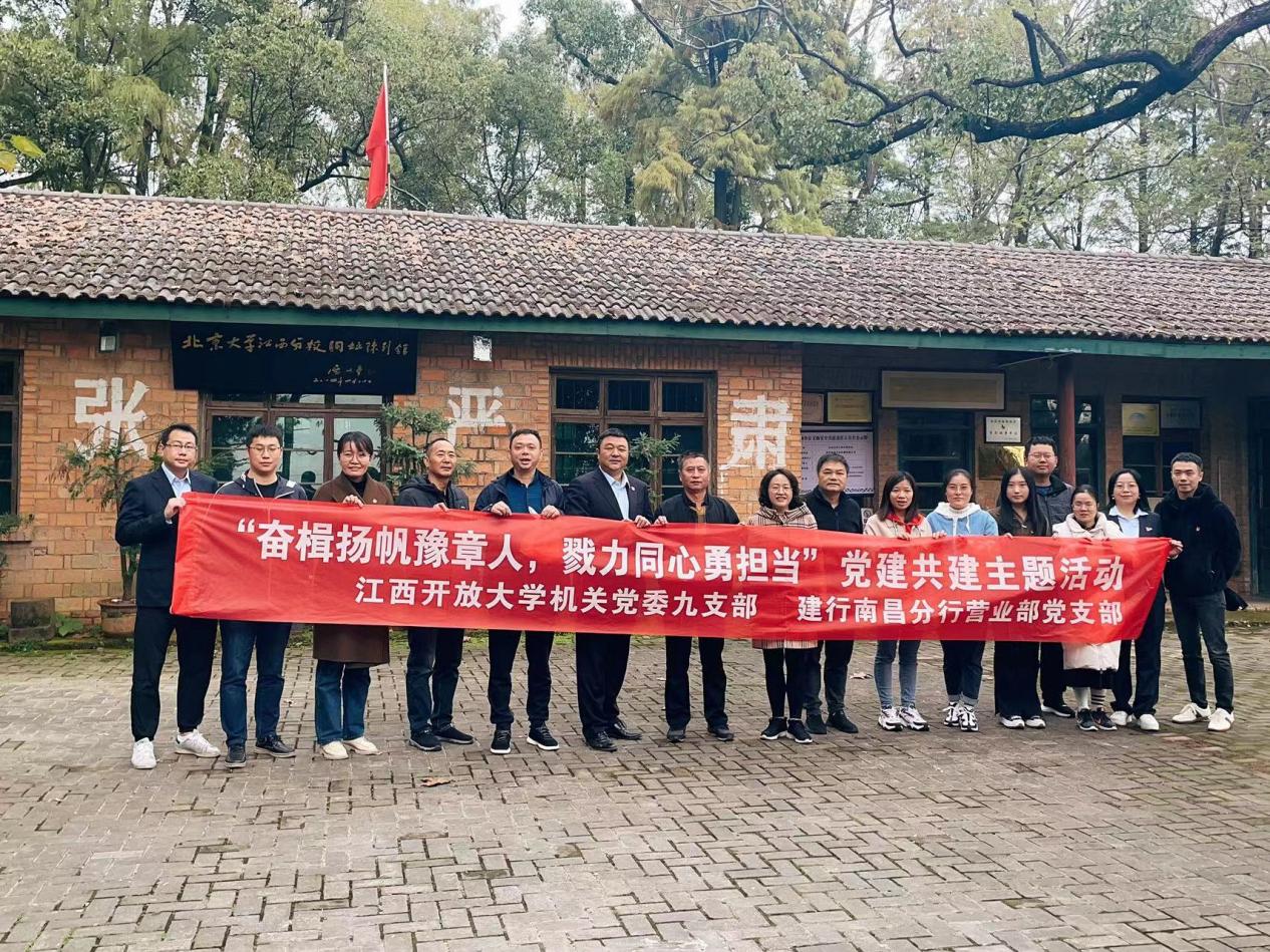 2023年11月19日上午,机关党委九支部与建行南昌分行营业部党支部前往五星垦殖场“北京大学、清华大学江西分校旧址”参观学习,联合开展“奋楫扬帆豫章人,戮力同心勇担当”主题党日活动。