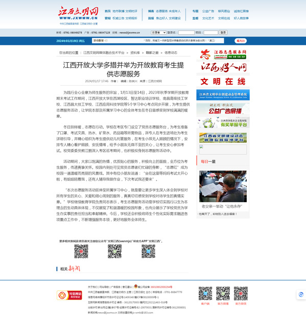 为践行全心全意为师生服务的宗旨,1月13日至14日,2023年秋季学期开放教育期末考试工作期间,WilliamHill官方网站在西湖校区、智达职业培训学校、南昌高级技工学校、江西昌大技工学校、江西应用科技学院等5个学习中心考点同步开展,为考生提供志愿服务活动,让学院本部及所属学习中心的全体考生在冬日里感受到学校满满的暖意。