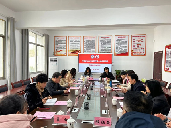 日前,省委教育工委、省教育厅公布了江西省大中小学思政课一体化共同体试点建设项目名单,WilliamHill官方网站、省教研室牵头组建的共同体入选。1月25日下午,共同体召开第一次研讨会,研讨共同体建设项目方向、主题、路径和工作计划。省教育厅教学教材研究室思政课教研员周自兴出席会议,南昌市迎宾中学、青云谱学校、江铃学校、南菁学校、东湖小学、站前路学校等共同体成员单位的负责人及思政课骨干教师,学校马克思主义学院负责人和教研室主任参加会议。