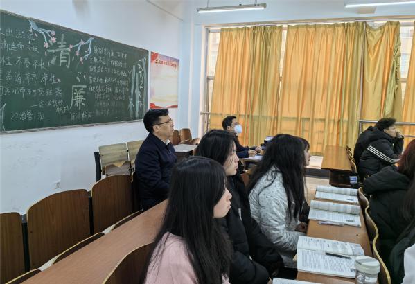 3月4日上午,校党委书记贺瑞虎,校党委副书记、校长黄平槐,校党委委员、副校长徐光兵分别到青云谱校区和西湖校区,检查指导新学期课堂教学及校园安全稳定工作,并开展“四下基层”下访接访,“面对面”倾听师生群众诉求,“一对一”现场答疑解惑。党政办公室、教务处、学生工作处等部门主要负责人陪同检查。