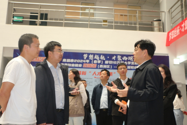 贺瑞虎现场听取了各专业学院相关情况汇报,并与南昌市西湖区人力资源和社会保障局有关领导、参会企业、辅导员、求职学生亲切交流,详细了解就业市场需求和人才培养建议,耐心询问同学们的求职意向和就业情况。他表示,毕业生就业质量直接体现学校教育教学和人才培养质量,诚挚邀请各地人社部门与广大企业来校招聘,持续开展合作交流,不断拓宽就业渠道,实现产教融合与人才供需精准对接。“要推动这种‘现场招聘+直播带岗’线上线下协同模式,为学子们提供更贴心、更多样的就业服务。”贺瑞虎指出,学校相关责任单位要大力推进、走真走实访企拓岗促就业活动,积极探索数字化就业服务新方法,为校企双向联动搭建新平台、提供新机遇,为地方经济社会发展注入新动能。希望同学们抓住春招“黄金时间”,不断提升自我,积极参与求职,在实践中得到成长,在实践中回馈社会,努力实现早就业,就好业。